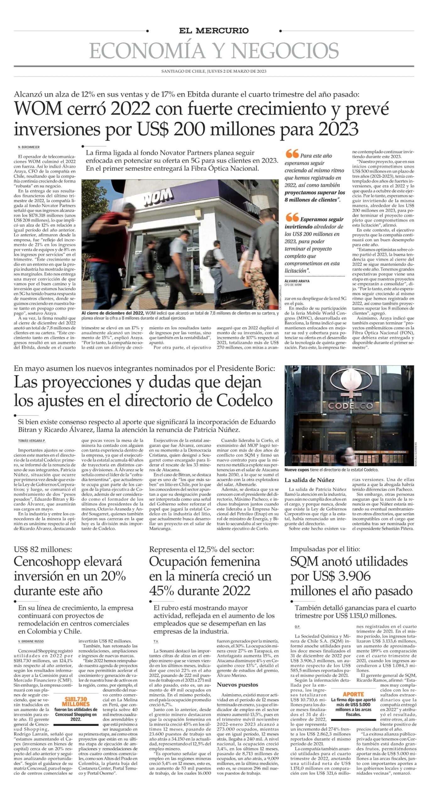 El operador de telecomunicaciones WOM culminó el 2022 con fuerza. Así lo indicó Álvaro Araya, CFO de la compañía en Chile, resaltando que la compañía continúa creciendo de forma ‘robusta’ en su negocio.