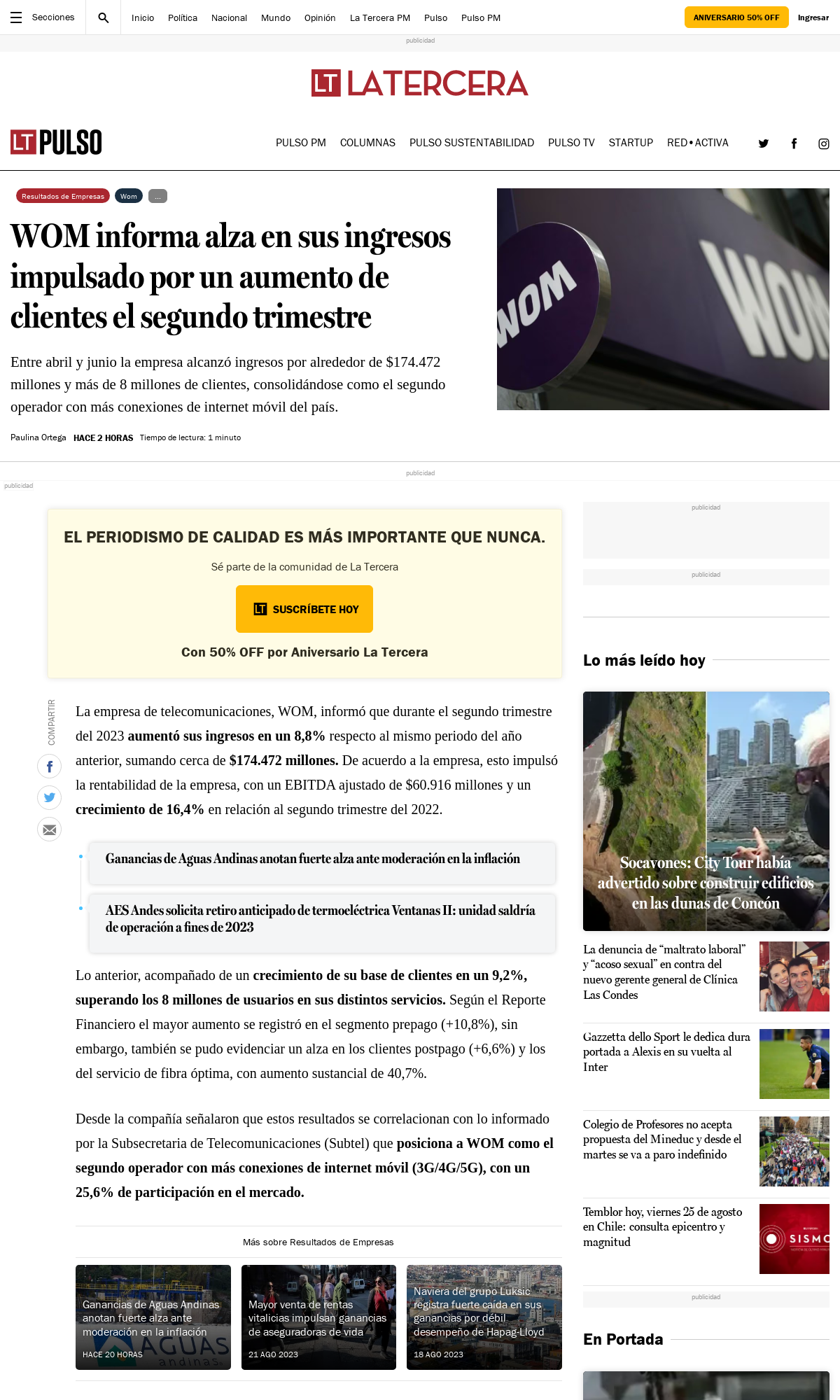 WOM informa alza en sus ingresos impulsado por un aumento de clientes el segundo trimestre